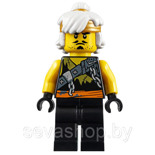 Первая минифигурка – это Молодой Ву. На нем черный потрепанный костюм без рукавов и завязанные волосы. Вооружен мечом.