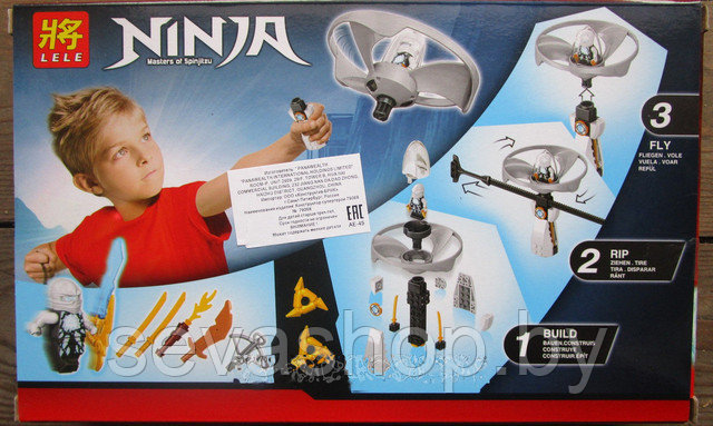 Данная модель конструктора состоит из красочных, прочных деталей, которые надежно крепятся между собой, подробной инструкции по сборке и комплект игровых карточек. Собрав этот набор Ваш ребенок получит разнообразное оружие Ниндзя, пропеллер, механизм для запуска и фигурку героя. Наборы конструкторов можно дополнять и комбинировать, они полностью совместимы с конструкторами Lego.